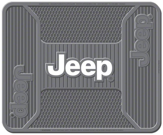 Durable Construction. This officially licensed Rear Utility Floor Mat features durable gray rubber construction making it ideal for continued use. The back side features a nibbed surface to grip your Jeep's carpet and prevent sliding during travel.