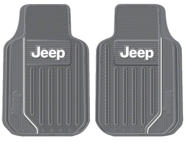 Durable Construction. These officially licensed Front Floor Mat feature durable gray rubber construction making them ideal for continued use. The back side features a nibbed surface to grip your Jeep's carpet and prevent sliding during travel.