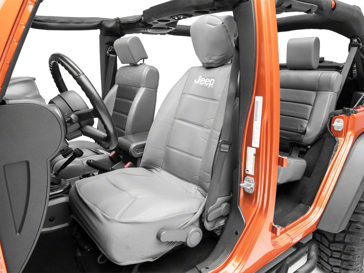 Official Jeep Style. Protect and enhance your Jeep's interior with this Jeep Logo Side Less Seat Cover in gray vinyl. Officially-licensed with the Jeep logo in the mid shoulder blade range, you get a sturdy, style upgrade.