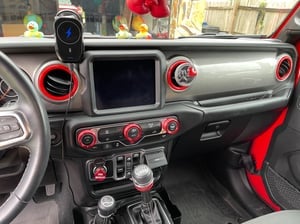 Custom Interior Styling. Add impressive custom show car styling to your JL Wrangler's interior with a set of RedRock Red Air Conditioning Vent Trim Rings. These great looking, red Trim Ring Accents are an inexpensive way to upgrade the appearance of your interior and they perfectly match RedRock's complete line of red interior styling parts.