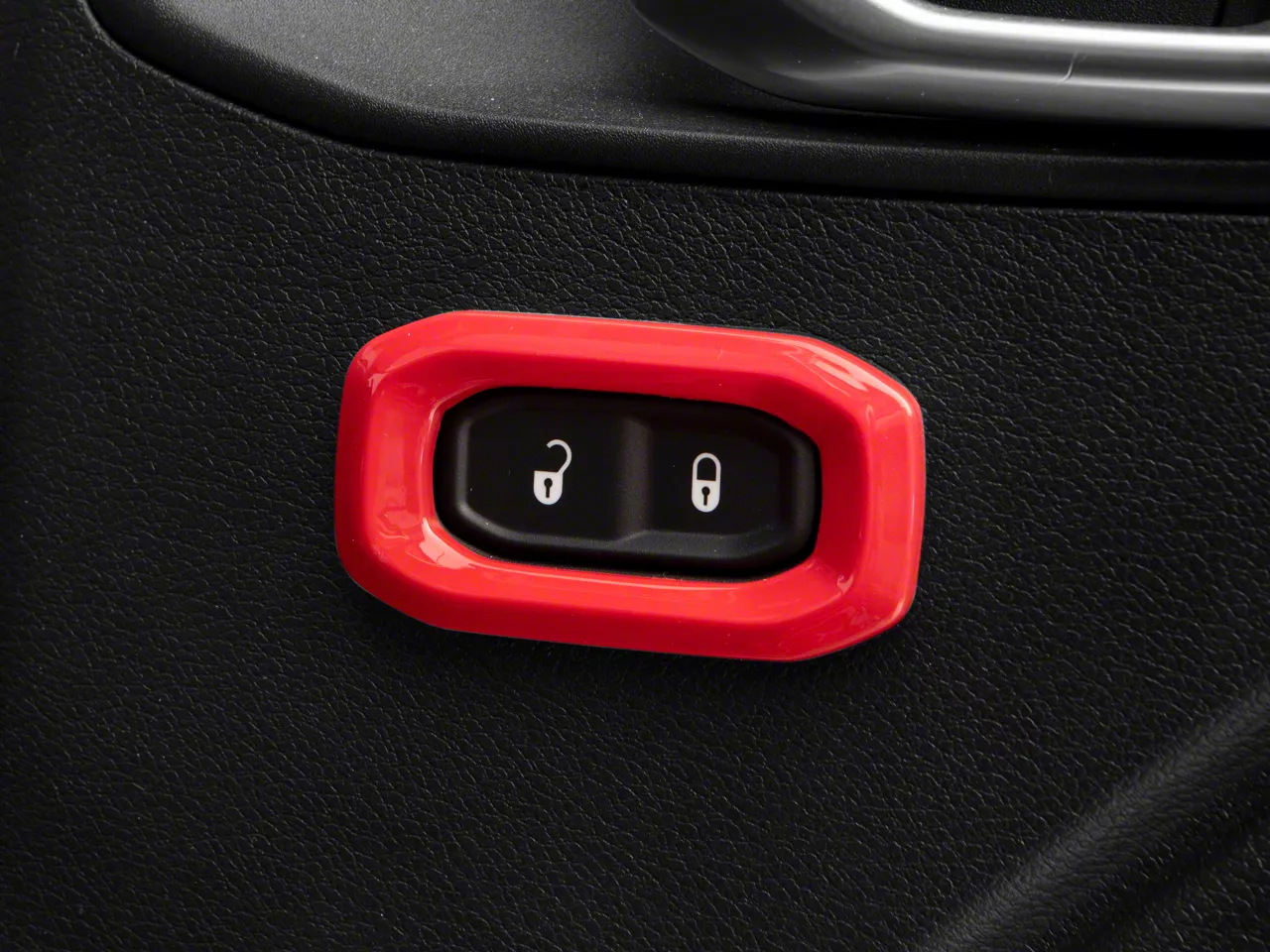 Custom Interior Styling. Add impressive custom show car styling to your JL Wrangler's interior with a set of RedRock Red Door Lock Trim Bezels. These great looking, red Trim Bezels Accents are an inexpensive way to upgrade the appearance of your interior and they perfectly match RedRock's complete line of other red interior styling parts.