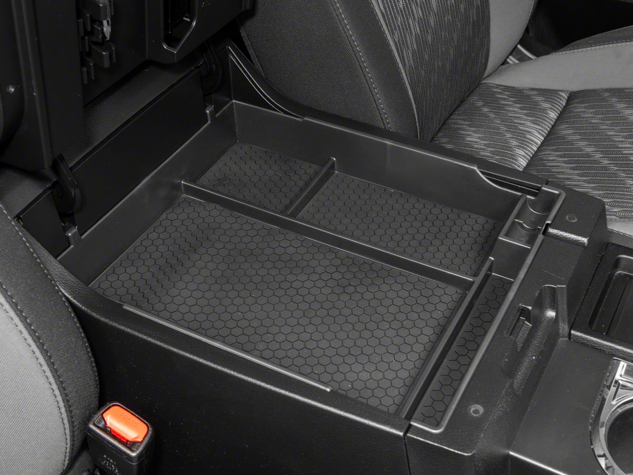 OEM Appearance. RedRock manufactures its Center Console Storage Organizer Tray from an injection-molded ABS material for excellent durability. This Storage Organizer features a lightly textured black finish for an OEM appearance that compliments your factory interior nicely.