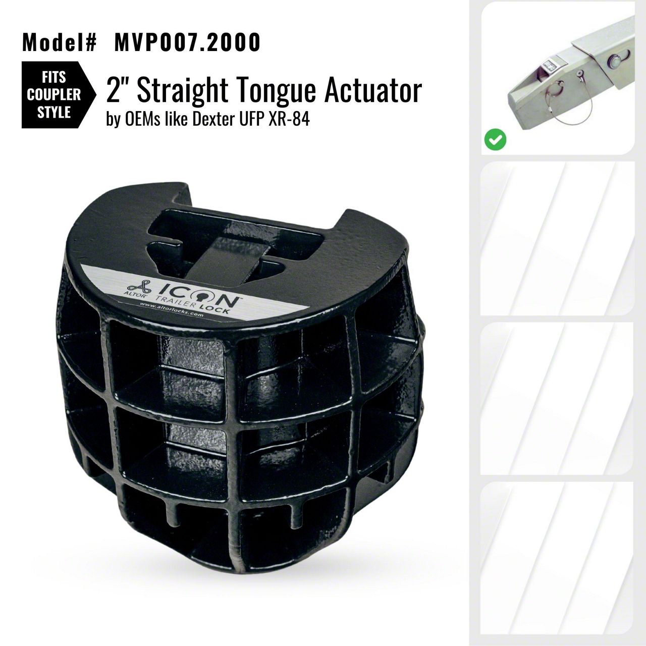 Altor Icon Trailer Coupler Lock for 2-Inch Hitch Ball; UFP XR-84 Straight Tongue Actuator Coupler