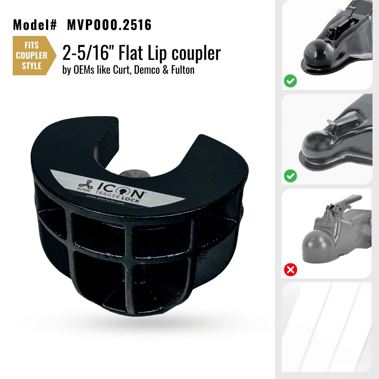 Altor Icon Trailer Coupler Lock for 2-5/16-Inch Hitch Ball; Flat Lip Coupler