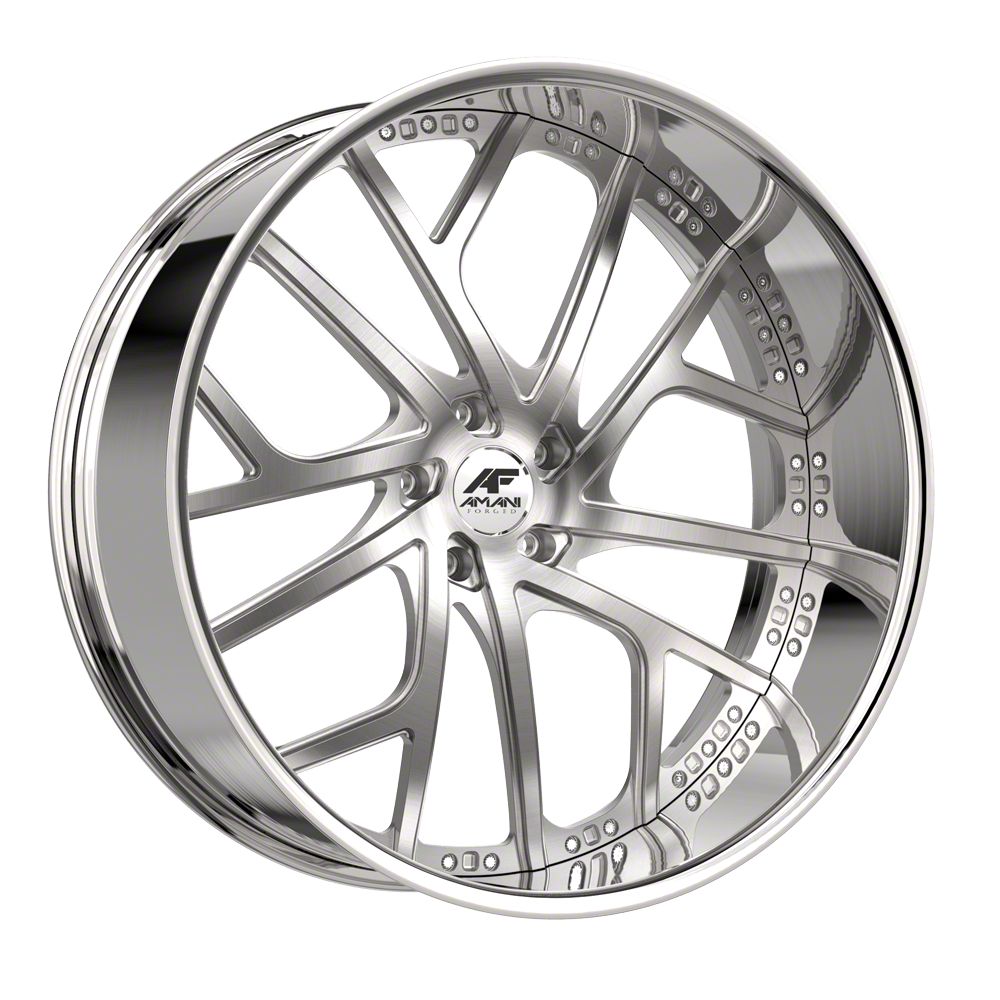 This 26x9 Amani VERGE-L Brush Center with Chrome Lip Wheel; 26x9; 1mm Offset is completed in a high-quality brushed finish with a chrome lip to make your wheel the envy of everyone. For added looks and durability, the wheels has a durable clear coat that withstand the rigors of daily driving.