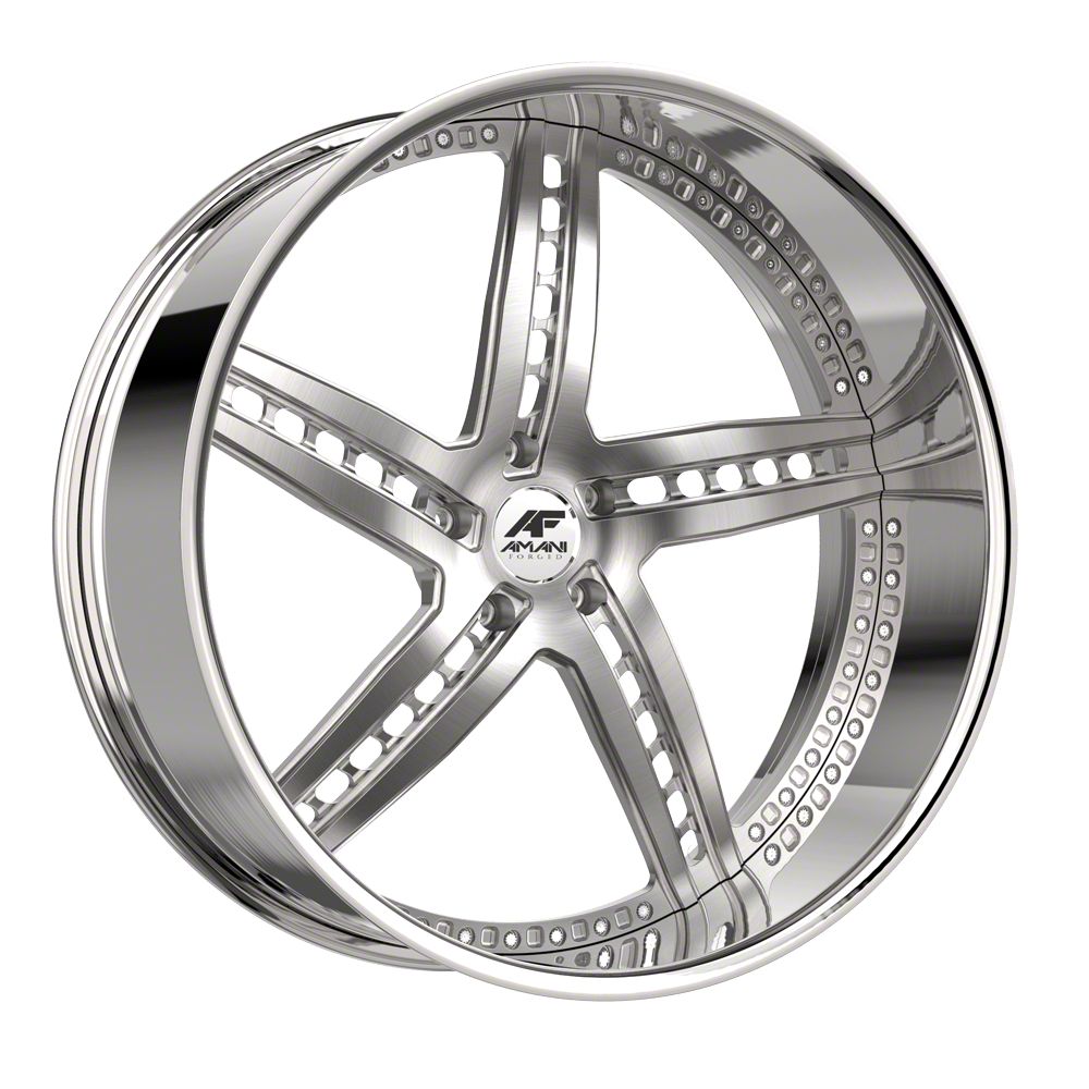 This 26x9 Amani Monero-L Brush Center with Chrome Lip Wheel; 26x9; 1mm Offset is completed in a high-quality brushed finish with a chrome lip to make your wheel the envy of everyone. For added looks and durability, the wheels has a durable clear coat that withstand the rigors of daily driving.