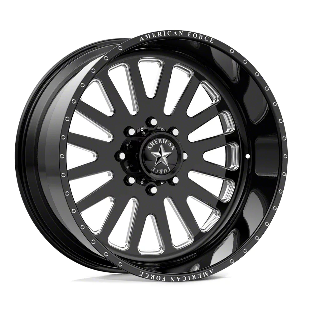 American Force F20 Atom SS Gloss Black Machined 6-Lug Wheel; 26x14; -73mm Offset The American Force F20 Atom SS Gloss Black Machined 6-Lug Wheel combines a sleek, sophisticated design with premium construction that enhances the visual appeal and complements a wide range of vehicle styles. This wheel is perfect for those seeking to make a bold statement while maintaining elegance and robustness.