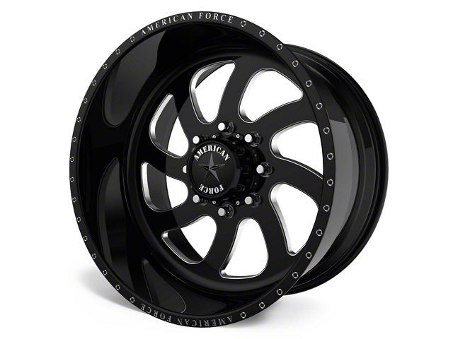 The 20x14 American Force 76 Blade SS Gloss Black Machined 6-Lug Wheel; 20x14; -73mm Offset is completed in a high-quality gloss black finish with machined accents that will make others green with envy. For added protection and good looks, this wheel features a durable clear coat that can withstand the hazards of daily driving.