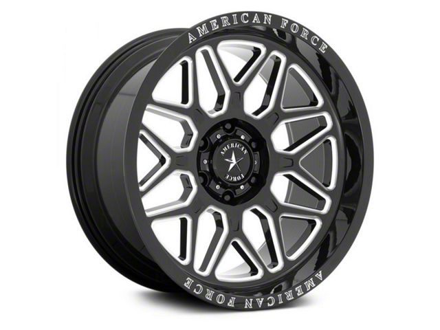 American Force Rush Gloss Black Milled 6-Lug Wheel; 22x10; -18mm Offset - Experience the sleek elegance of the American Force wheel. Its matte black finish adds a touch of sophistication to your vehicle, enhancing its overall appearance without compromising on durability. Perfect for a variety of vehicle styles, this wheel is a testament to the brand's commitment to quality and aesthetic excellence.