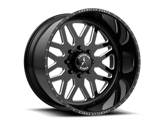 American Force B02 Trax SS Gloss Black Machined Wheel; 20x10 The American Force B02 Trax SS Gloss Black Machined Wheel combines a sleek, sophisticated design with premium construction that enhances the visual appeal and complements a wide range of vehicle styles. This wheel is perfect for those seeking to make a bold statement while maintaining elegance and robustness.
