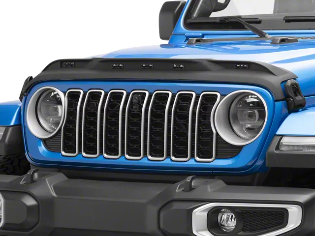 Application. This American Modified Hood Protector Stone Guard with Amber LED Lights fits all 2020-2025 Jeep Gladiator JT Models, Excluding Mojave.