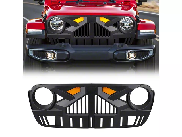 Application. This Empire Grille with Amber Lights and Camera Bracket fits 2018-2026 Jeep Wrangler JL models.