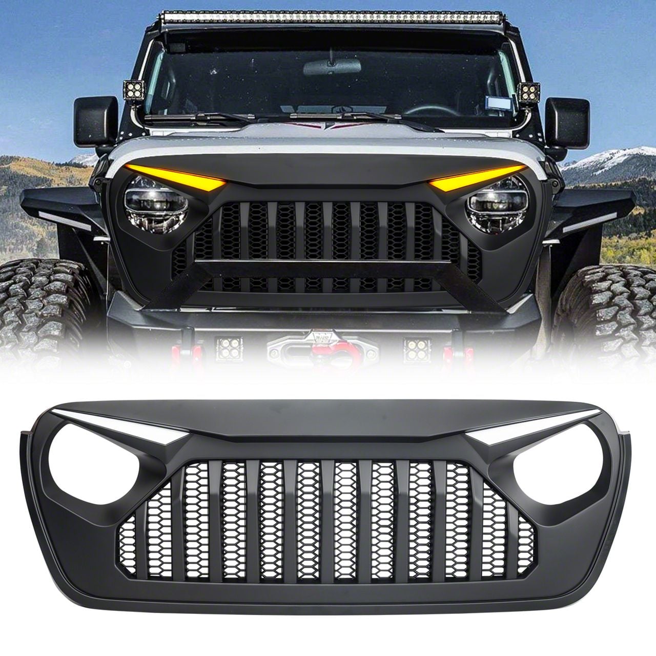 "Eyebrow" DRL (Daytime Running Lights): The LED strips along the top provide bright, modern daytime visibility and a signature look.