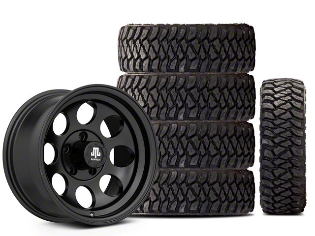 Mounted and Balanced Wheel and Tire Kit. This wheel and tire combo kit features (5) 15x8 Mammoth 8 Matte Black Wheels and (5) Mickey Thompson Baja Legend MTZ Mud-Terrain 35" - 35x12.50R15 tires that have been put together into an easy to buy kit that arrives to your door already mounted and balanced ready to be installed on your vehicle.