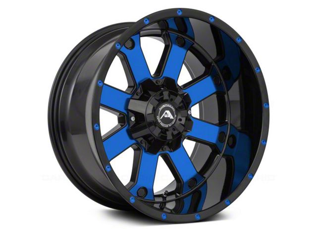 American Off-Road Wheels A108 Gloss Black Machined with Blue Tint 6-Lug Wheel; 20x10; -24mm Offset exudes sophistication with its finish, offering a sleek and modern appeal to any vehicle it adorns. The design is meticulously crafted to enhance the aesthetic of your vehicle, giving it a distinctive and upscale look. Perfect for those seeking to elevate their vehicle's style, this wheel blends seamlessly with both contemporary and classic vehicle designs, making it a versatile choice for a wide range of vehicles. Its robust construction ensures durability, making it a reliable choice for drivers who value both style and quality.