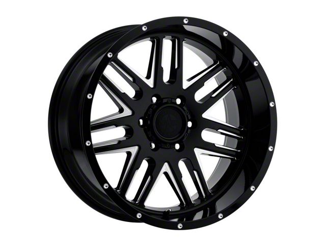 American Outlaw Wheels 12 Gauge Gloss Black Milled 6-Lug Wheel; 17x8.5; 0mm Offset exudes sophistication with its finish, offering a sleek and modern appeal to any vehicle it adorns. The design is meticulously crafted to enhance the aesthetic of your vehicle, giving it a distinctive and upscale look. Perfect for those seeking to elevate their vehicle's style, this wheel blends seamlessly with both contemporary and classic vehicle designs, making it a versatile choice for a wide range of vehicles. Its robust construction ensures durability, making it a reliable choice for drivers who value both style and quality.