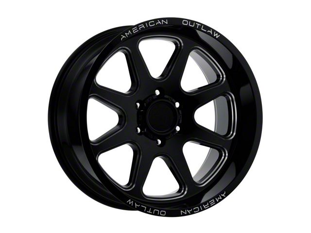 American Outlaw Wheels Derringer Gloss Black Milled 6-Lug Wheel; 20x9; 10mm Offset exudes sophistication with its finish, offering a sleek and modern appeal to any vehicle it adorns. The design is meticulously crafted to enhance the aesthetic of your vehicle, giving it a distinctive and upscale look. Perfect for those seeking to elevate their vehicle's style, this wheel blends seamlessly with both contemporary and classic vehicle designs, making it a versatile choice for a wide range of vehicles. Its robust construction ensures durability, making it a reliable choice for drivers who value both style and quality.