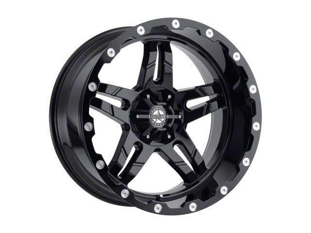 This 20x10 American Outlaw Wheels Revolver Gloss Black 5-Lug Wheel is completed in a high-quality gloss black finish that stands out immediately. There's a durable clear coat that protects against the hazards of driving.