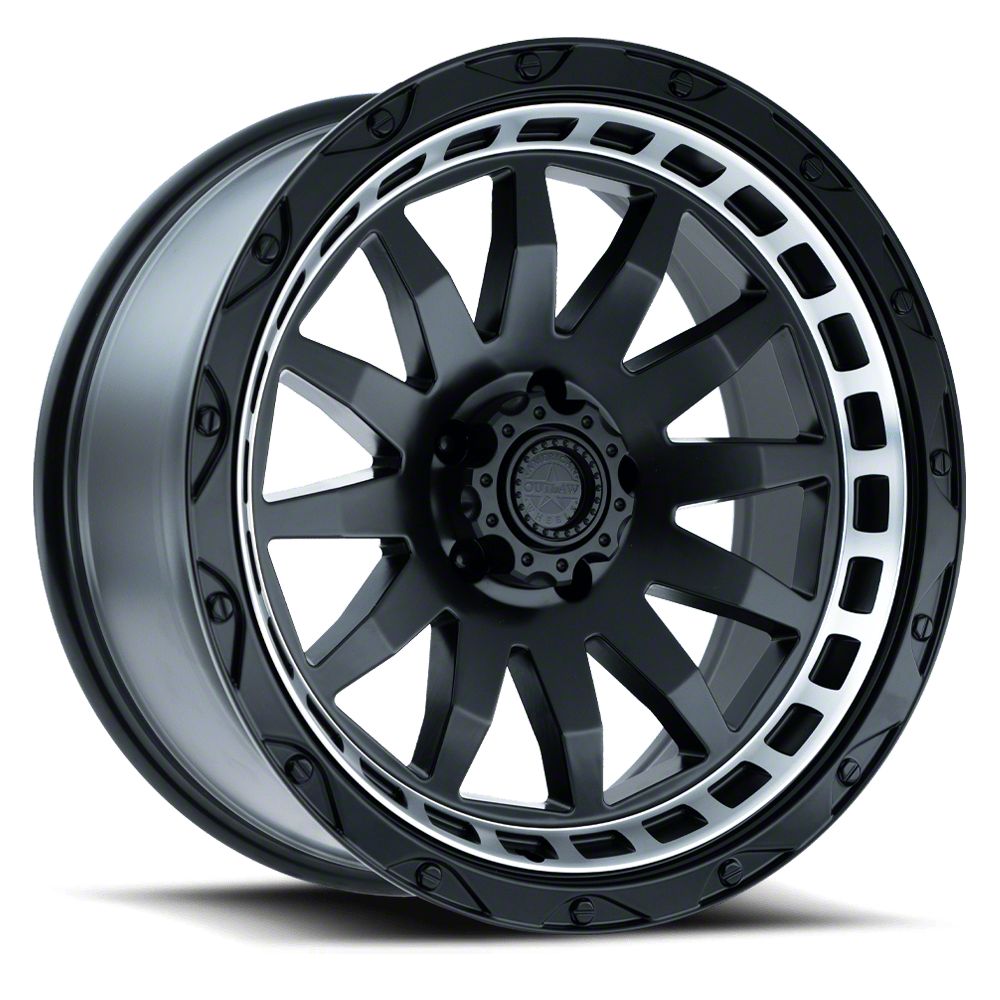 This 20x9 American Outlaw Wheels Flint Lock Satin Black Machined 6-Lug Wheel is completed in a high-quality satin black finish with machined accents to create an impressive appearance. There's a durable clear coat that protects against driving hazards.