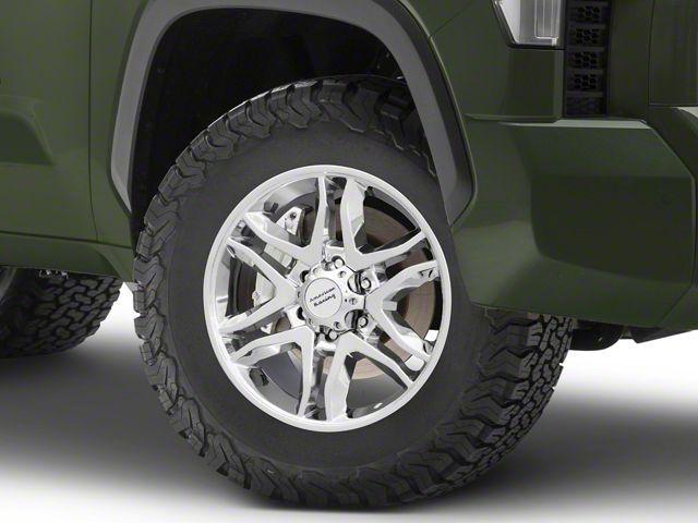 Application. This American Racing Mainline Chrome 6-Lug Wheel; 18x8.5; 30mm Offset, with a backspace of 5.931 Inch, 150.6mm and bolt pattern of 6 x 139.7mm (6 x 5.5-Inch), is designed to enhance alignment and driving stability, ensuring a perfect fit with the vehicle model. Specifically designed to fit 2022-2025 Tundra models, this wheel's specifications contribute to a seamless alignment and stable driving experience by ensuring the wheel fits perfectly within the vehicle's wheel well, reducing the risk of rubbing issues and optimizing handling characteristics. Sold individually.