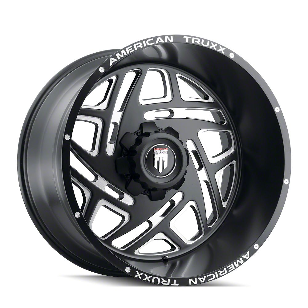 The 22x12 American Truxx Cosmos Satin Black Milled Wheel is completed in a high-quality satin black finish with steel milled accents that will be the envy of everyone. For added protection and good looks, there is a durable clear coat that withstands the rigors of everyday driving,