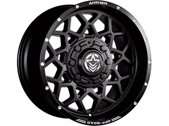 Anthem Off-Road Avenger Satin Black 6-Lug Wheel; 20x10; -18mm Offset. The Anthem Off-Road Avenger Satin Black 6-Lug Wheel offers a striking balance of style and refinement. Its unique design accentuates the vehicle's aesthetic, while the premium construction underscores its robust nature. This wheel is a perfect choice for those seeking both elegance and a strong visual statement.