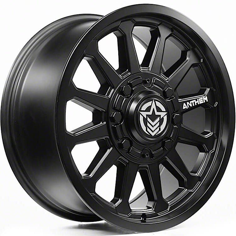 Anthem Off-Road Intimidator Satin Black 6-Lug Wheel; 17x9; 0mm Offset The Anthem Off-Road Intimidator Satin Black 6-Lug Wheel combines a sleek, sophisticated design with premium construction that enhances the visual appeal and complements a wide range of vehicle styles. This wheel is perfect for those seeking to make a bold statement while maintaining elegance and robustness.
