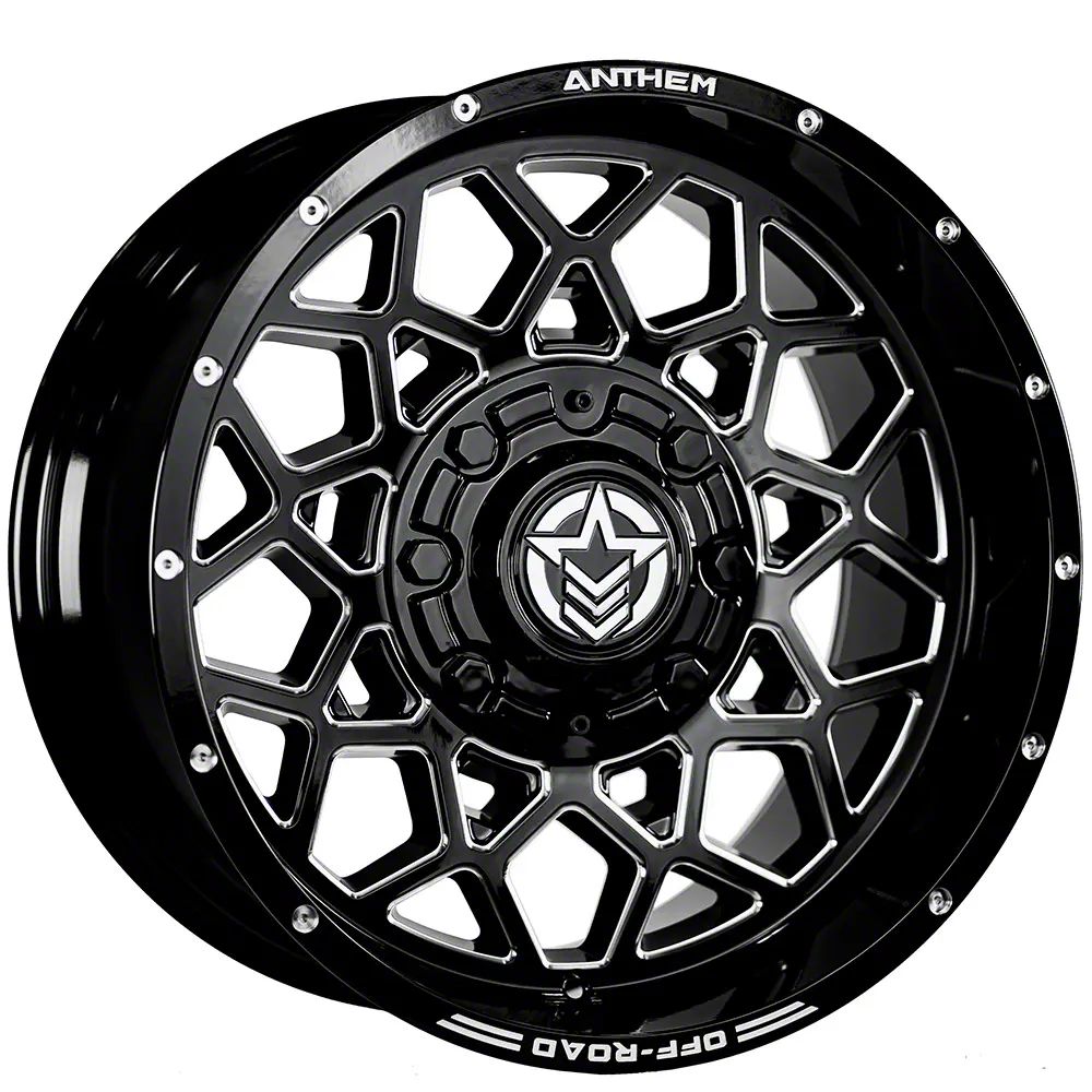 This 20x9 Anthem Off-Road Avenger Gloss Black Milled 6-Lug Wheel is completed in a high-quality gloss black finish with steel milled accents that will make the wheel the envy of everyone. There is a durable clear coat that protects against driving hazards.One-Piece Cast Aluminum Construction. This wheel is manufactured using gravity casting. Gravity casting is the process of pouring a molten aluminum alloy into a wheel mold or form utilizing the earth's own gravity to help fill the mold. The result is a strong, durable wheel that has the same good looks as a more expensive wheel, at a fraction of the price.