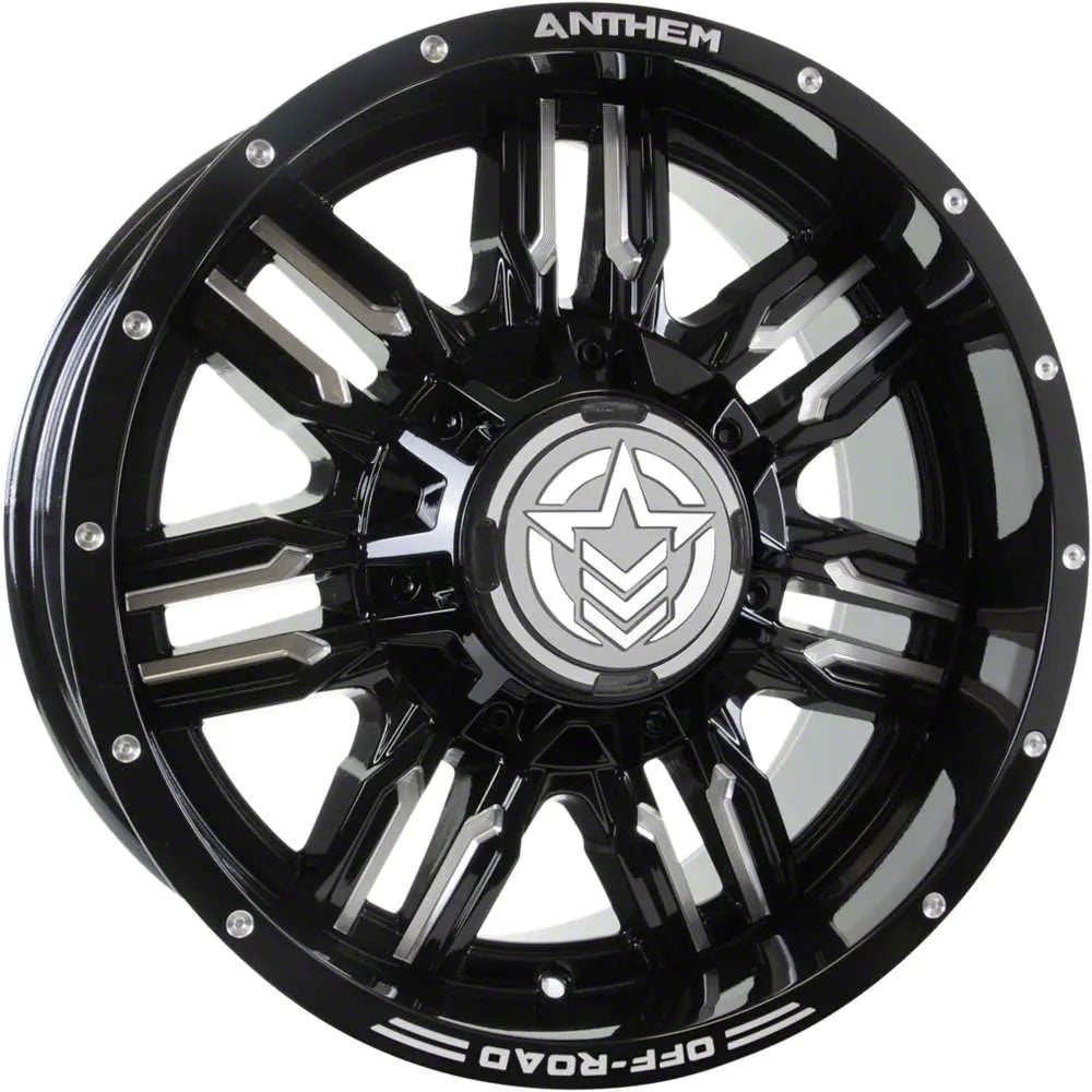 The 18x9 Anthem Off-Road Equalizer Gloss Black Milled Wheel; 18x9 is completed in a high quality, gloss black finish. The milled steel accents are where it really shines through. The accents make the split section of the spokes pop along the faux beadlock.