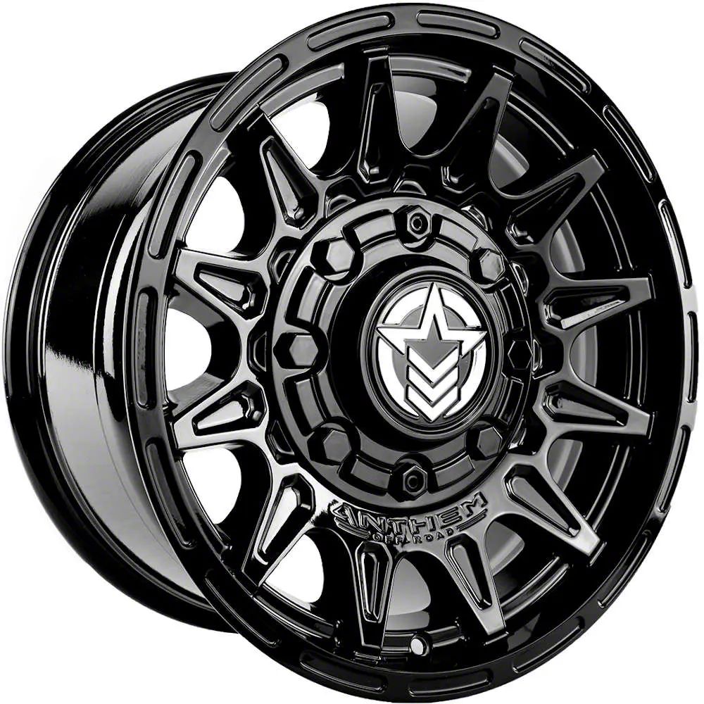 Anthem Off-Road Liberty Gloss Black Wheel; 17x9. The Anthem Off-Road Liberty Gloss Black Wheel offers a striking balance of style and refinement. Its unique design accentuates the vehicle's aesthetic, while the premium construction underscores its robust nature. This wheel is a perfect choice for those seeking both elegance and a strong visual statement.