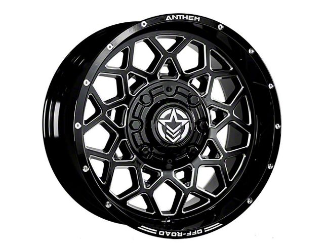 Anthem Off-Road Avenger Gloss Black Milled Wheel; 20x12. The Anthem Off-Road Avenger Gloss Black Milled Wheel offers a striking balance of style and refinement. Its unique design accentuates the vehicle's aesthetic, while the premium construction underscores its robust nature. This wheel is a perfect choice for those seeking both elegance and a strong visual statement.