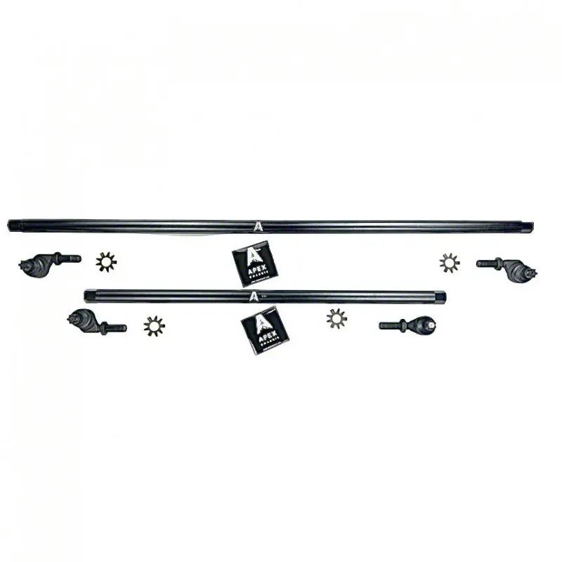 Refurbish Your Steering Kit. Upgrade your steering kit with the Apex Chassis 1-Ton Steering Kit with Flip Kit. This kit accentuates both metal and rugged metal bearing designs. Further, the kit provides precise heat treatment accordingly to the depth and location desired in addition to the polished ball studs that resemble anti-friction bearing with precise tolerances. Its rolled and step threads offer facile movement and superior grip.