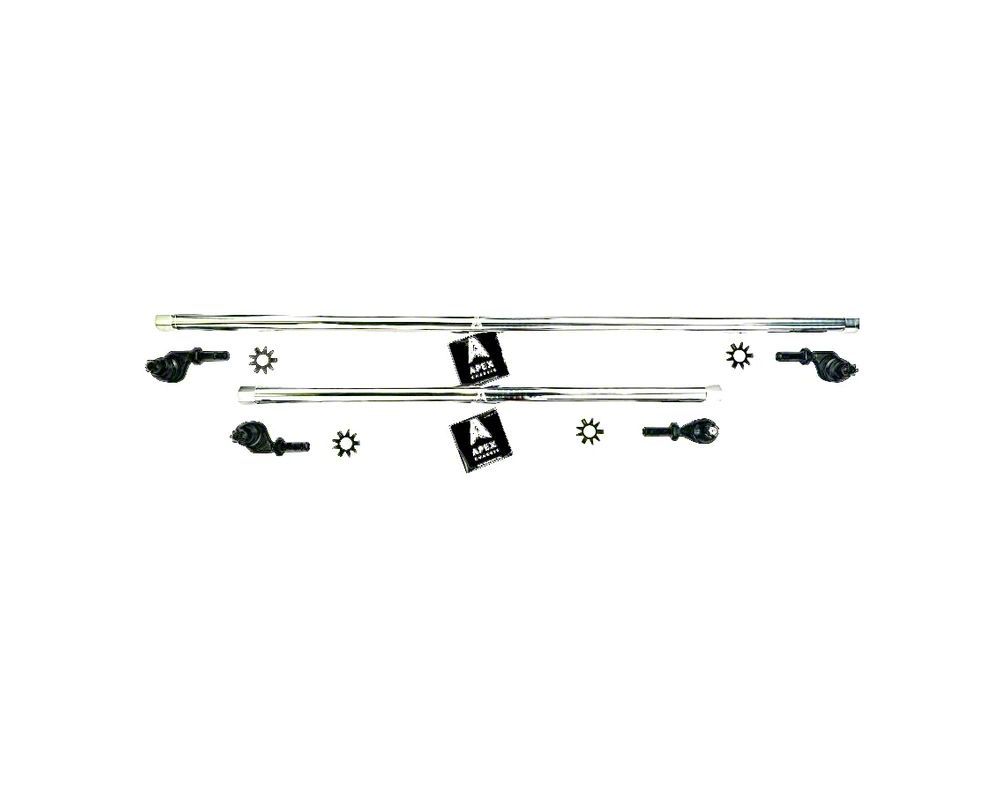 Stable Cruising. Ride more steadily with this Apex Chassis 1-Ton Steering Kit without Flip Kit; Polished Aluminum on your Jeep Wrangler. Sporting a tough machined design, this assembly features a hard structure that is optimized to maintain the angles of your axles.