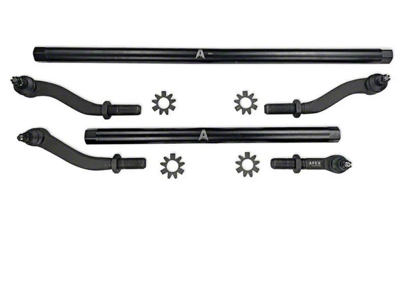 High-Strength Steering Upgrade. The Apex Chassis 2.5-Ton Steering Kit provides a robust solution for enhancing your Jeep Wrangler JK's steering performance, specifically designed for vehicles with 0 to 3.50-inch lift. This kit delivers improved steering feel and increased steering angle, ensuring precise control and maneuverability on and off the road.