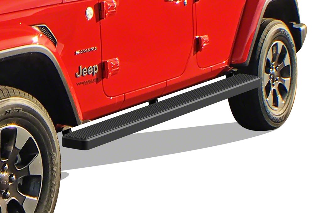 Application. These 5-Inch iStep Running Boards; Black are designed to fit 2018-2026 Jeep Wrangler JL 4 Door models. Driver and passenger side included.