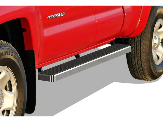 Stylish Steps and Functional Side Protection. Enhance the look of your Tacoma with a pair of 5-inch iStep Running Boards in Hairline Silver. The polished hairline silver finish and black non-slip surface provide a sophisticated finish that complements any truck. Aside from guaranteeing a non-slip and stylish foothold, these running boards also offer protection from flying rocks and debris.