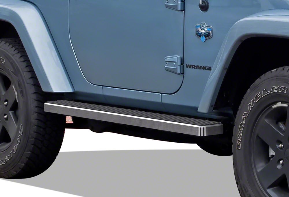 Application. These Hairline Silver 5-inch iStep Wheel-to-Wheel Running Boards have been specially designed for 2007 to 2018 Jeep Wrangler JK 2-Door models.