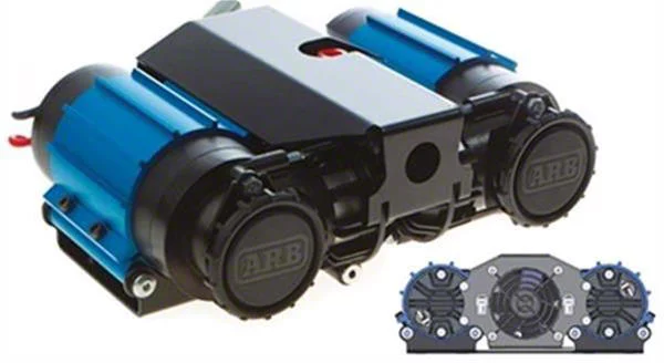 Compact Power. ARB's 12V Twin On Board Air Compressor caters to the needs of today's off road enthusiast by providing a system to actuate Air Lockers white also accommodating the use of most air powered tools. Whether you're on the trail or in the garage this compact compressor will provide rapid inflation of any size tire and supply continuous air for use of air tools rated up to 85LPM (3CFM) @ 6Bar (90PSI). This kit also includes an OEM quality compressor isolating switch to provide a seamless integration with your Bronco's system.