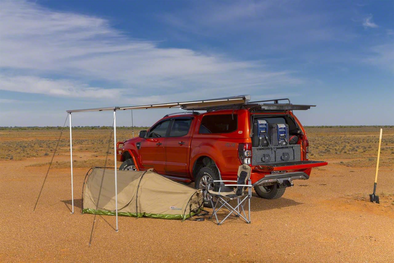Comfort and Convenience. Designed for compatibility with teardrop trailers, RVs, campers, 4x4s, and SUVs, this premium-grade PVC-lined polyester awning guarantees durability and superior weather resistance. It neatly folds away into a durable, nylon-reinforced PVC bag for convenient storage. The package includes pegs, guy ropes for securing legs, easy-to-follow installation instructions, and all necessary hardware, making it a breeze to attach to the side of roof racks or bars. Embrace the great outdoors with ease and comfort with the ARB Shade Awning.