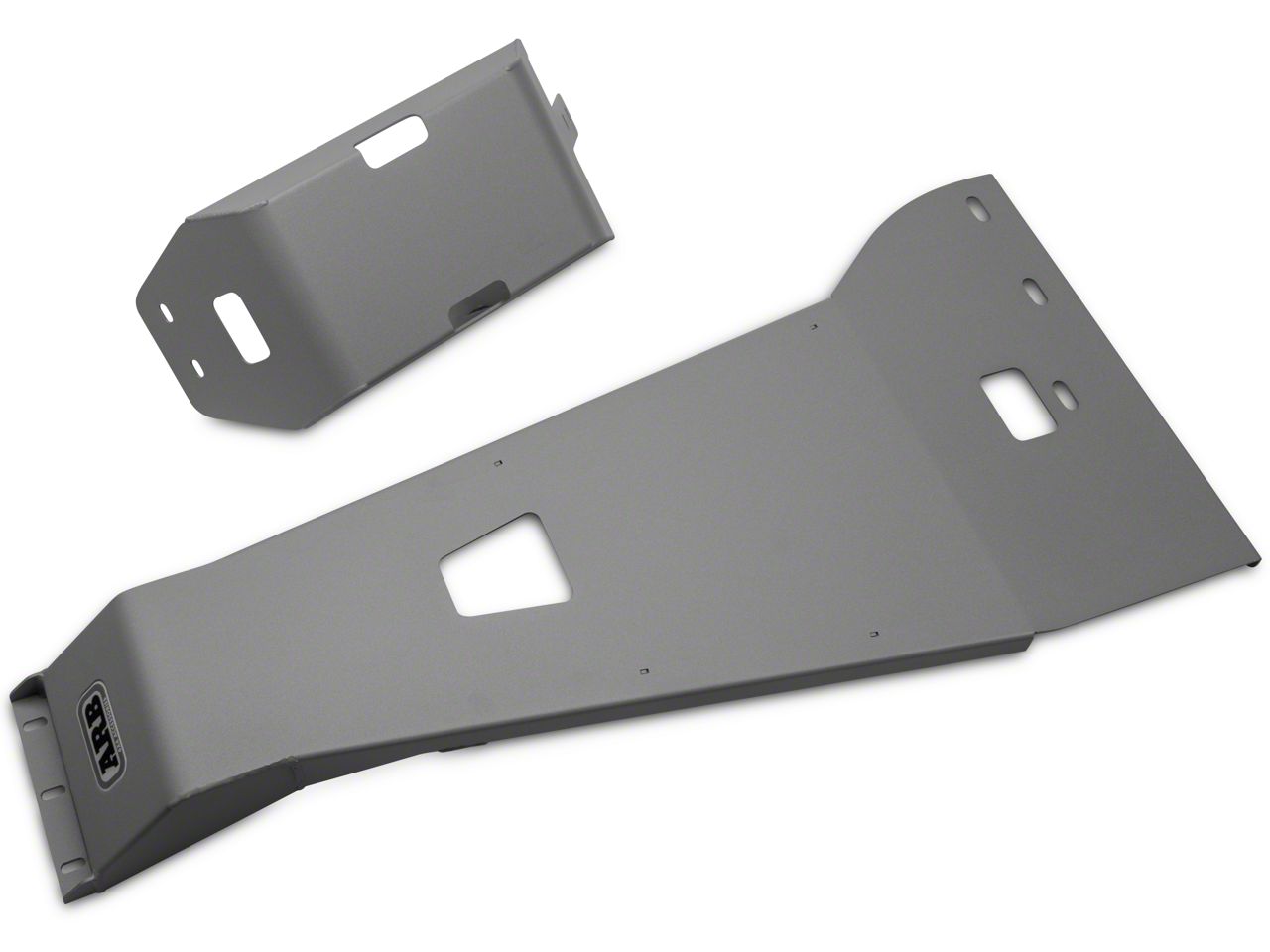 Innovative Design. ARB has re-invented the oil and transmission skid plate; Offering clearances to accommodate long arm kits and after market control arms, this kid provides the protection you need without interfering with your suspension or lift kit and also provides easy access to your JK's oil drain plug. This innovate skid includes a three piece cross member for adapting a unique mount to your existing engine mounts to give you the best clearance available while providing full cradling protection for your oil pan and transmission.