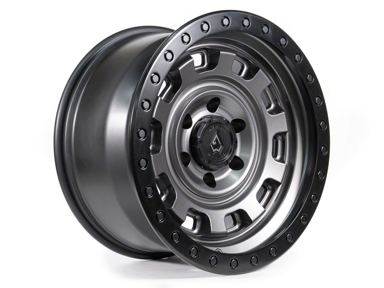 The 17x9 Arena Gunner Satin Gunmetal Center with Satin Black Lip 6-Lug Wheel is completed in a high-quality satin gunmetal finish with satin black accents that will be the envy of everyone. There is a durable clear coat for added looks and protection.