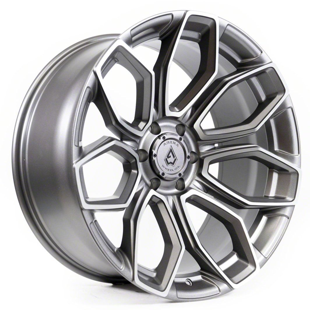 Arena Cobra Texture Gun Metal Machine Clear Coat Wheel; 22x10; 15mm Offset With its well-executed finish, this wheel brings a polished presence to any truck. Arena is known for producing wheels that combine style with dependable construction, and the Cobra Texture Gun Metal Machine Clear Coat is no exception. This wheel is a solid choice for truck owners who want to upgrade their look without compromising on durability.