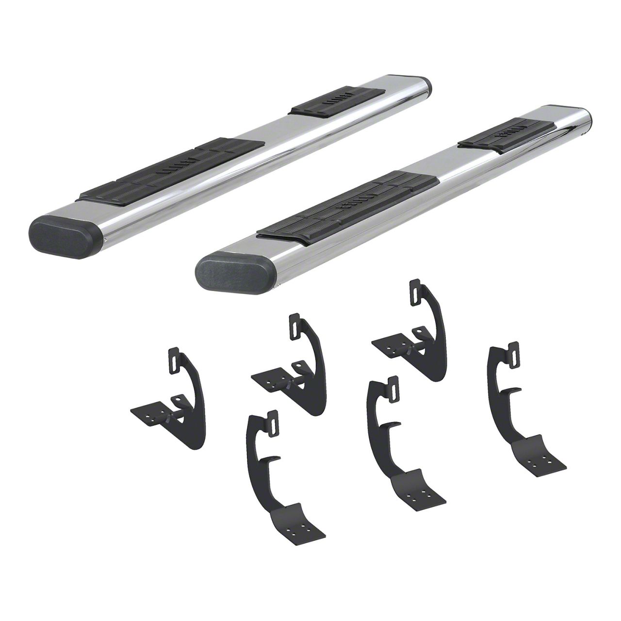 Construction and Look. These Aries Automotive 6 Inch Oval Side Step Bars are made from 304 stainless steel, measuring 6 inches with an OE-style tube design. They are finished in polished stainless steel with a non-slip pad and plastic end caps. The bars are functional, but look pretty darn good as well.