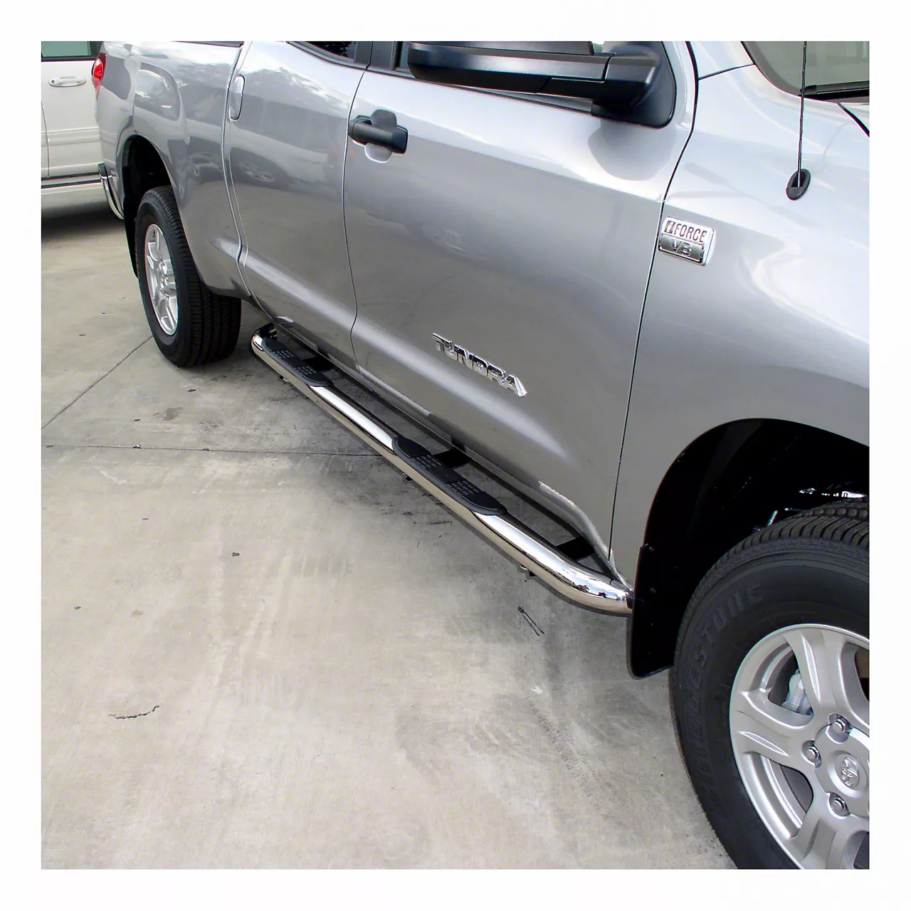Application. This set of Aries Automotive 3-inch Round Side Step Bars with polished stainless finish fits all 2007-2021 Toyota Tundra CrewMax models.