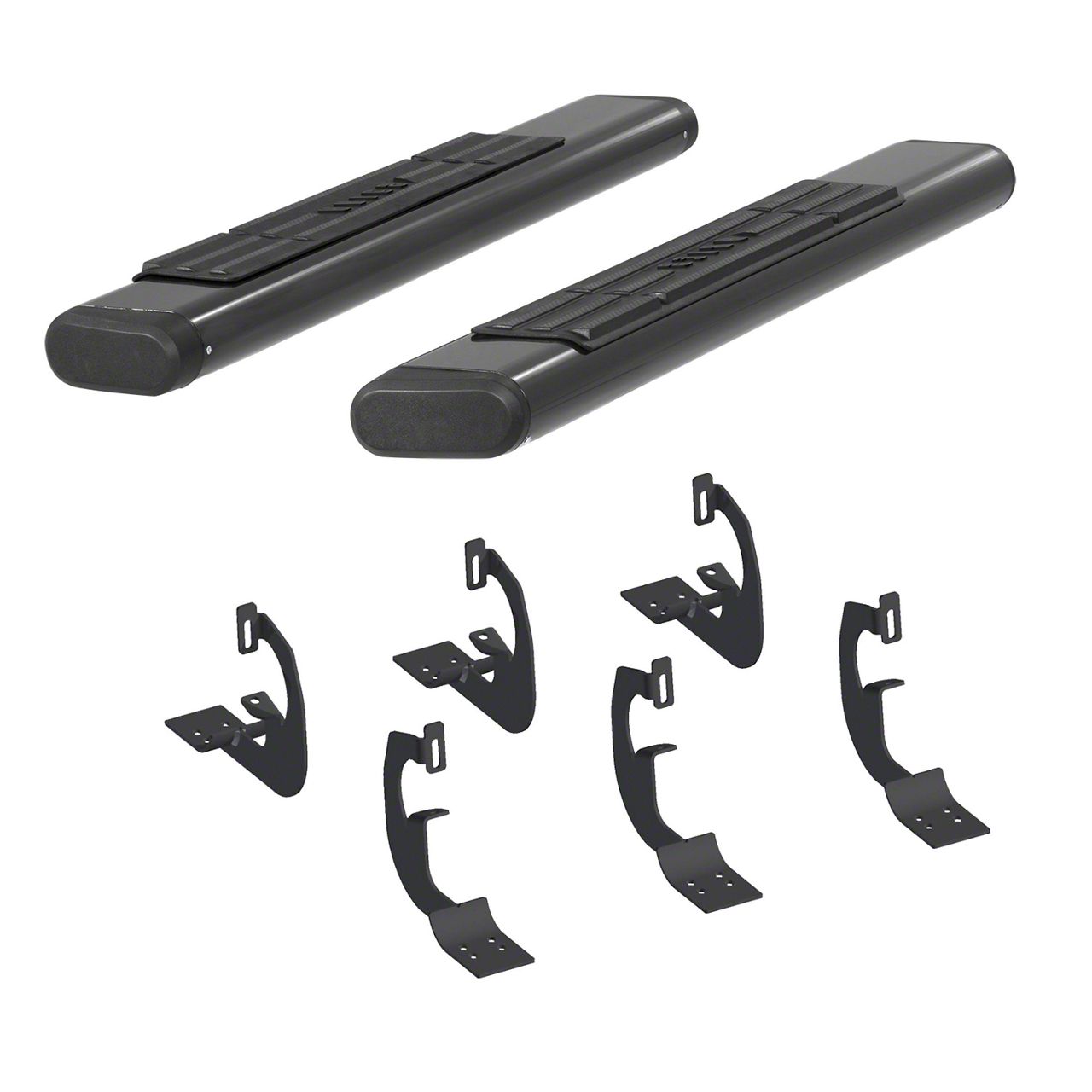 Construction and Look. These Aries Automotive 6 Inch Oval Side Step Bars are made from aluminum alloy, which is known for its light weight and rust-free properties. These bars measure 6 inches with an OE-style tube design. They are finished in durable, semi-gloss, black, powder coat with a non-slip pad and plastic end caps. The bars are functional, but look pretty darn good as well.