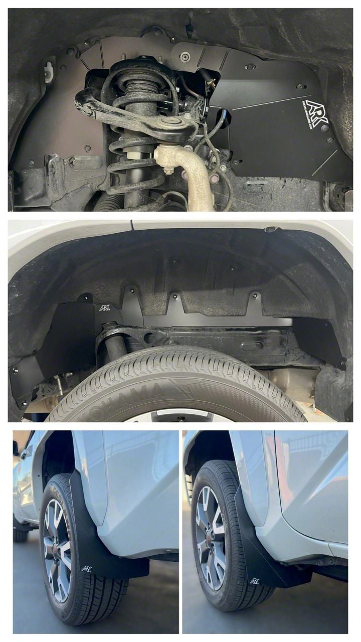 Ark Splash Guards TriXpoly Front Inner Fender Liners with Mid Mud Flaps; Front and Rear Kit; Black (25-26 4Runner, Excluding Trailhunter & TRD Pro)Find parts that fit my vehicle