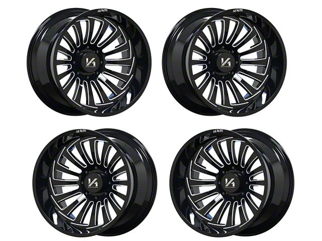 Arkon Off-Road Alexander Gloss Black with Milled Edges 6-Lug 4-Wheel Kit; 20x12; -51mm Offset exudes sophistication with its finish, offering a sleek and modern appeal to any vehicle it adorns. The design is meticulously crafted to enhance the aesthetic of your vehicle, giving it a distinctive and upscale look. Perfect for those seeking to elevate their vehicle's style, this wheel blends seamlessly with both contemporary and classic vehicle designs, making it a versatile choice for a wide range of vehicles. Its robust construction ensures durability, making it a reliable choice for drivers who value both style and quality.