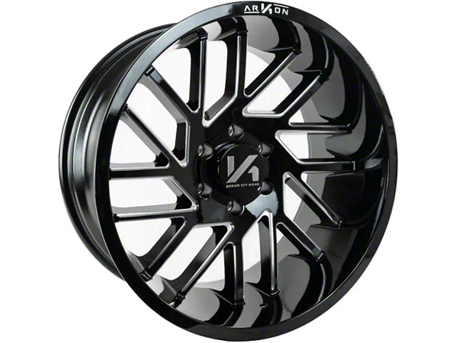Arkon Off-Road Mandela Gloss Black with Milled Edges 6-Lug 4-Wheel Kit; 20x10; -25mm Offset. The Arkon Off-Road Mandela Gloss Black with Milled Edges 6-Lug 4-Wheel Kit offers a striking balance of style and refinement. Its unique design accentuates the vehicle's aesthetic, while the premium construction underscores its robust nature. This wheel is a perfect choice for those seeking both elegance and a strong visual statement.