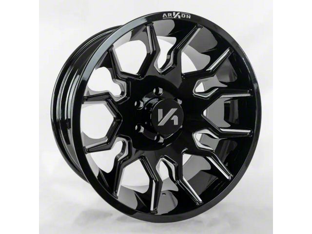 Arkon Off-Road Roosevelt Gloss Black with Milled Edges 6-Lug Wheel; 20x10 offers a striking aesthetic appeal that complements any vehicle style. The Arkon Off-Road brand ensures its premium craftsmanship. This wheel's design is versatile, making it a fitting choice for both rugged trucks and sleek cars.