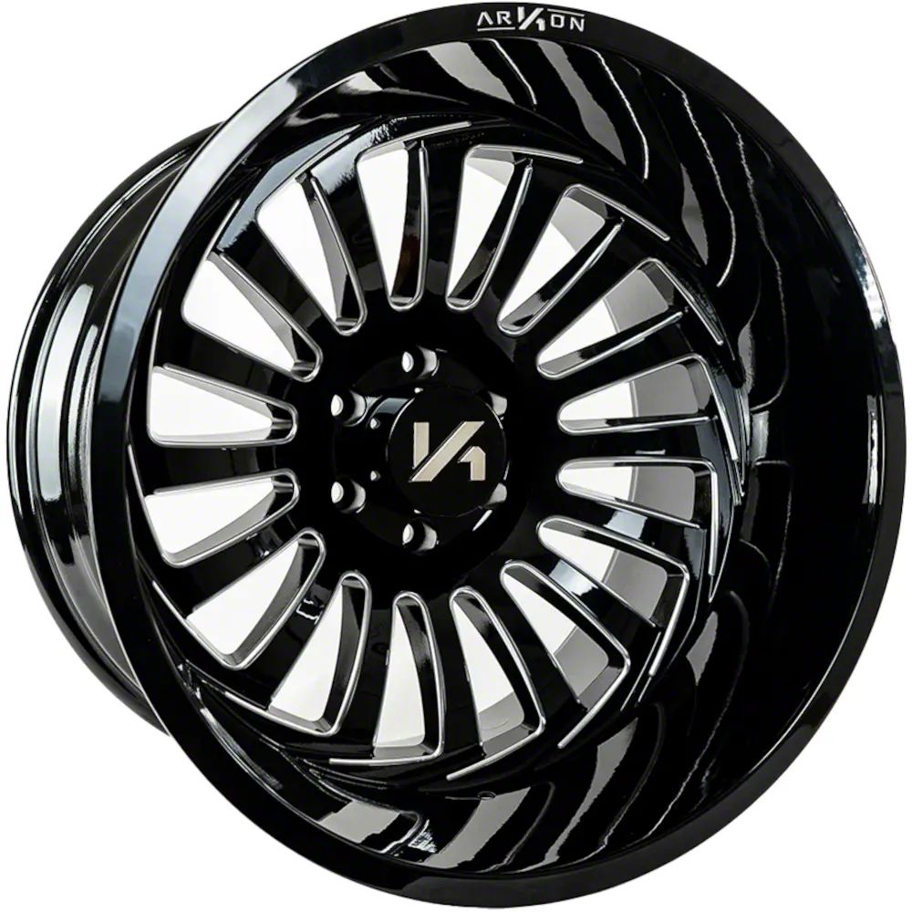 Arkon Off-Road Alexander Gloss Black Milled 6-Lug 4-Wheel Kit; 22x14; -81mm Offset exudes sophistication with its finish, offering a sleek and modern appeal to any vehicle it adorns. The design is meticulously crafted to enhance the aesthetic of your vehicle, giving it a distinctive and upscale look. Perfect for those seeking to elevate their vehicle's style, this wheel blends seamlessly with both contemporary and classic vehicle designs, making it a versatile choice for a wide range of vehicles. Its robust construction ensures durability, making it a reliable choice for drivers who value both style and quality.